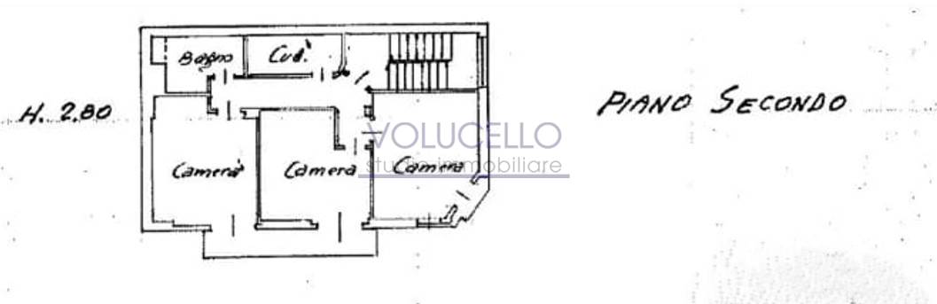 Al piano secondo ulteriore appartamento composto da cucina, sala, due camere, bagno e balcone;